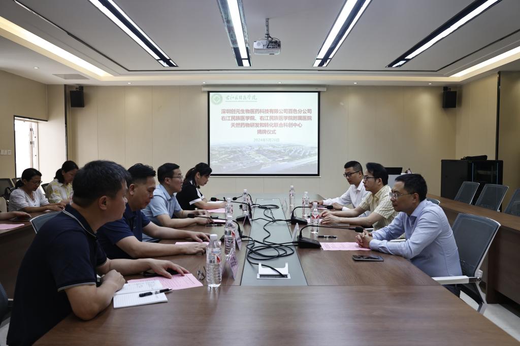 5月26日,天然药物研发和转化联合科创中心在必赢官网揭牌成立。该中心是由深圳创元生物医药科技有限公司百色分公司、必赢242net官网、必赢242net官网附属医院三方合作共建,旨在积极挖掘与充分利用百色市天然产物的资源优势,致力研发和转化创新药物。