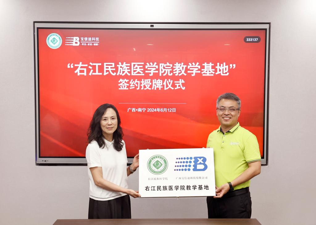 邓砚向广西宝信迪科技有限公司授予“必赢242net官网教学基地”牌匾。