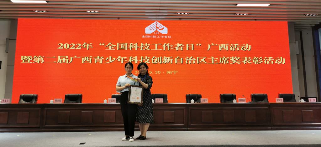 研究生覃花杏同学荣获广西青少年科技创新自治区主席奖