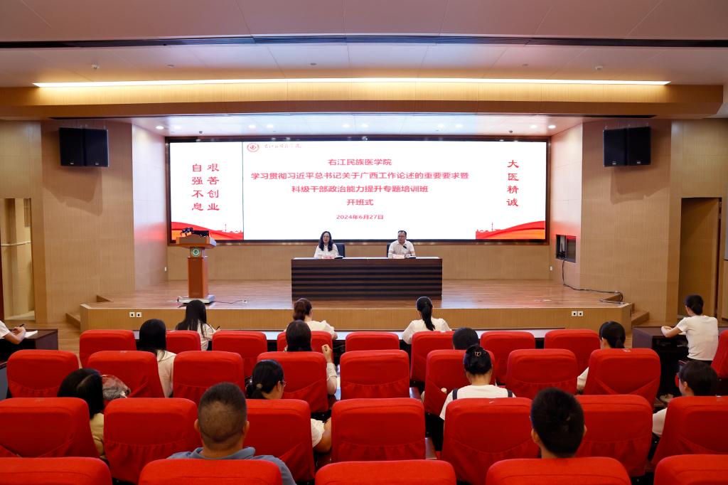 6月27日至28日,必赢官网学习贯彻习近平总书记关于广西工作论述的重要要求暨科级干部政治能力提升专题培训班在国际会议中心学术报告厅圆满举行。学校党委书记邓砚出席培训班开班仪式,学校全体科级干部,必赢官网派驻西林县脱贫攻坚(乡村振兴)第一书记、工作队员及各帮扶乡镇领导代表、各帮扶村村干部代表参加培训。开班仪式由党委组织部副部长吕维纯主持。