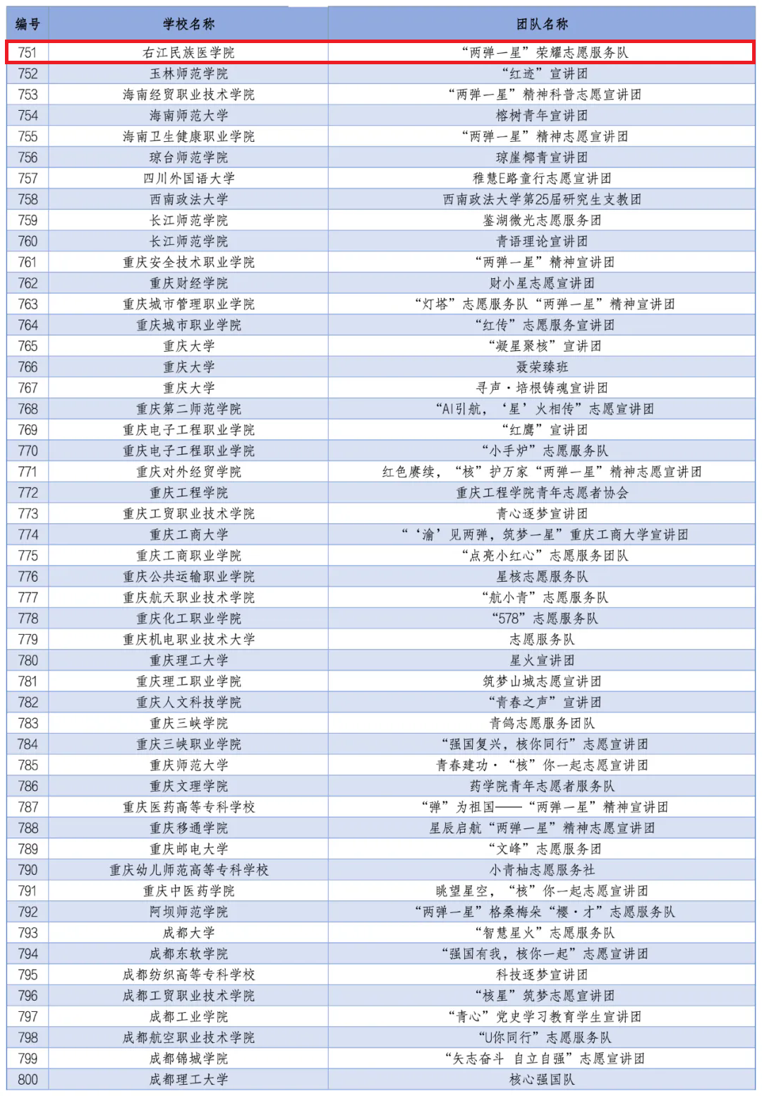 2024年全国大学生“两弹一星”精神志愿宣讲团入选团队名单