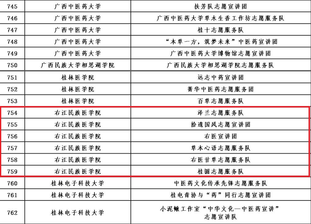 同时,中国青年志愿者公众号也公布了2024年全国大学生中医药志愿宣讲团入选团队的名单,必赢官网泽兰志愿服务队、拾遗国风志愿宣讲团、右医宣讲团、草本心语志愿服务队、右医甘草志愿服务队和桂圆志愿服务队,总计六支团队入选。