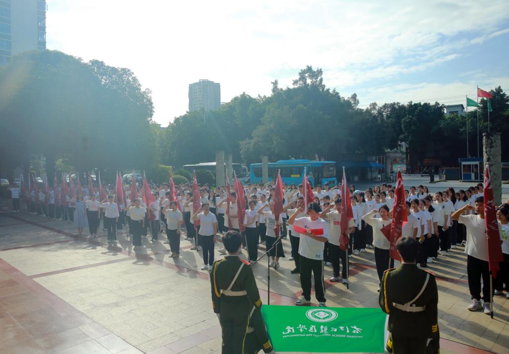 在学生代表张习文的带领下,社会实践团队全体成员庄严宣誓。他们铿锵有力的誓言回荡在会场,充分展示了右医青年学子的信心与决心。他们誓将用自己的知识、热情和努力,为社会实践活动的顺利开展贡献力量。