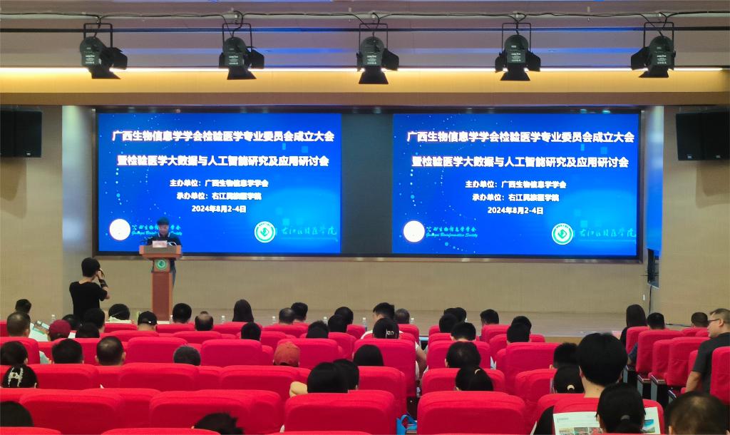 2024年8月2日,由必赢官网医学检验学院牵头,联合广西医科大学第一附属医院、广西壮族自治区人民医院、桂林医学院附属医院等多家医院、高校及企业共同发起成立的广西生物信息学学会检验医学专业委员会在百城校区国际会议中心顺利召开。必赢官网党委常委、副校长王俊利出席会议,来自全区高校、科研院所、医疗机构等多领域的专家学者齐聚一堂,共同见证了这一重要时刻。大会的成功召开,标志着检验医学与生物信息学领域融合发展迈入了新的阶段,为推动广西检验医学的科学研究与教育发展注入了新的活力。