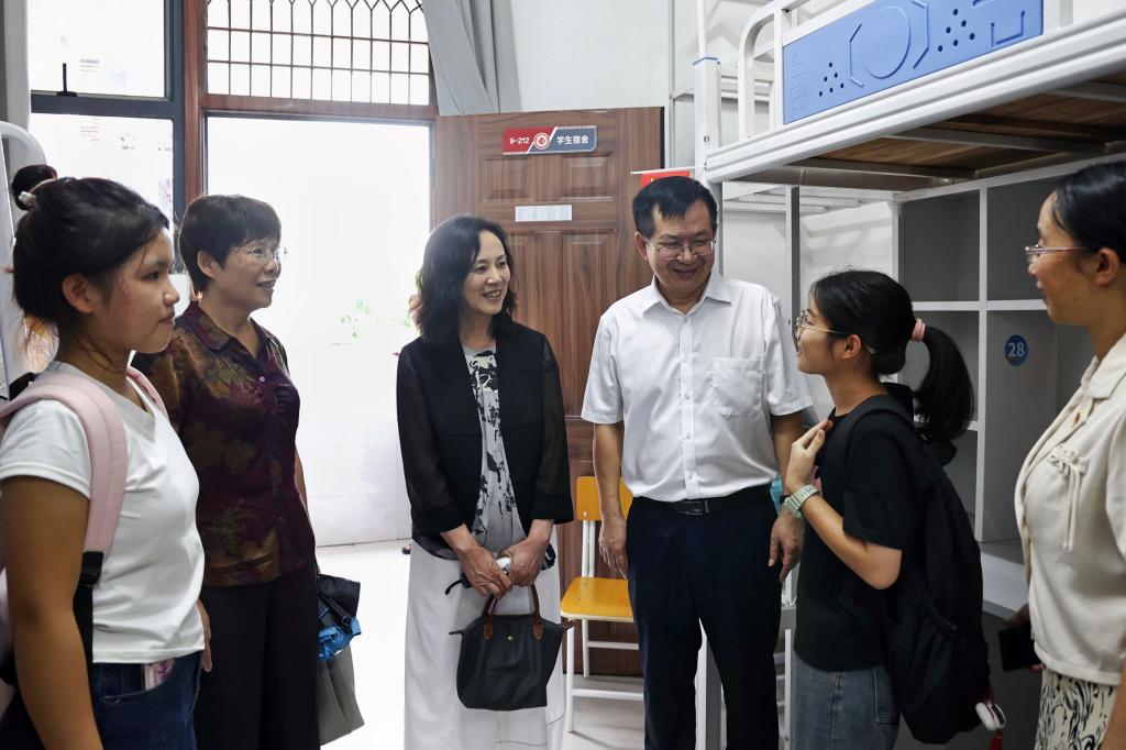 “同学从哪里来?”“一切都安排妥当了吗?”“孩子送到右医来上学,请放心。”在走访百东校区思源公寓时,校领导与新生及家属进行亲切交流,从个人规划、生活习惯、住宿饮食等多方面深入了解新生情况,鼓励新生们尽快转变角色,适应新环境。校领导表示将持续关心和支持新生的成长和发展,为他们提供更加优质的教育资源和更加广阔的发展空间。
