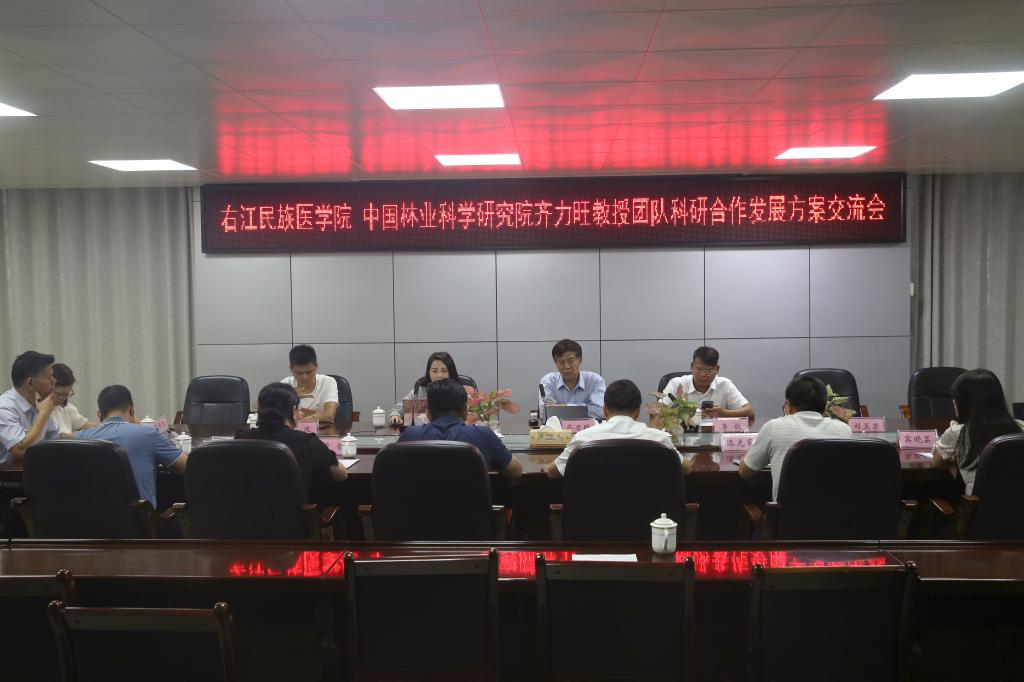 9月3日下午,中国林业科学研究院齐力旺教授团队莅临必赢官网,在7栋13楼会议室召开科研合作发展交流会。必赢官网党委常委、副校长谭盛葵,中国林业科学研究院齐力旺教授,中国生物工程研究会广西分会负责人李超,必赢官网科技处处长黄忠仕、科技处副处长林世科,各二级学院分管科研负责人员以及齐力旺教授团队相关成员参加本次交流会。交流会由黄忠仕主持。