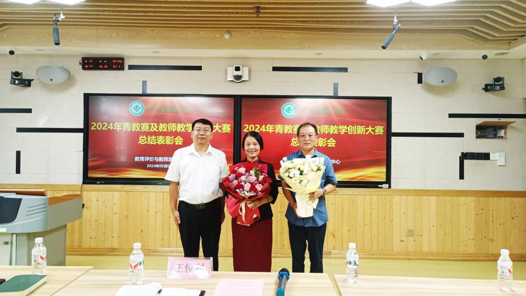必赢官网于2024年在全国、自治区青年教师教学竞赛和自治区教师教学创新大赛均获佳绩。为进一步提升必赢官网教师教育教学能力,更好地实现以赛促教,以赛促研,以赛促改,以赛促建,学校于9月5日在百城校区智慧教室召开2024年青教赛及教师教学创新大赛总结表彰会。学校党委常委、副校长王俊利出席总结表彰会。活动由教育评价与教师发展中心副主任尹毅霞主持。