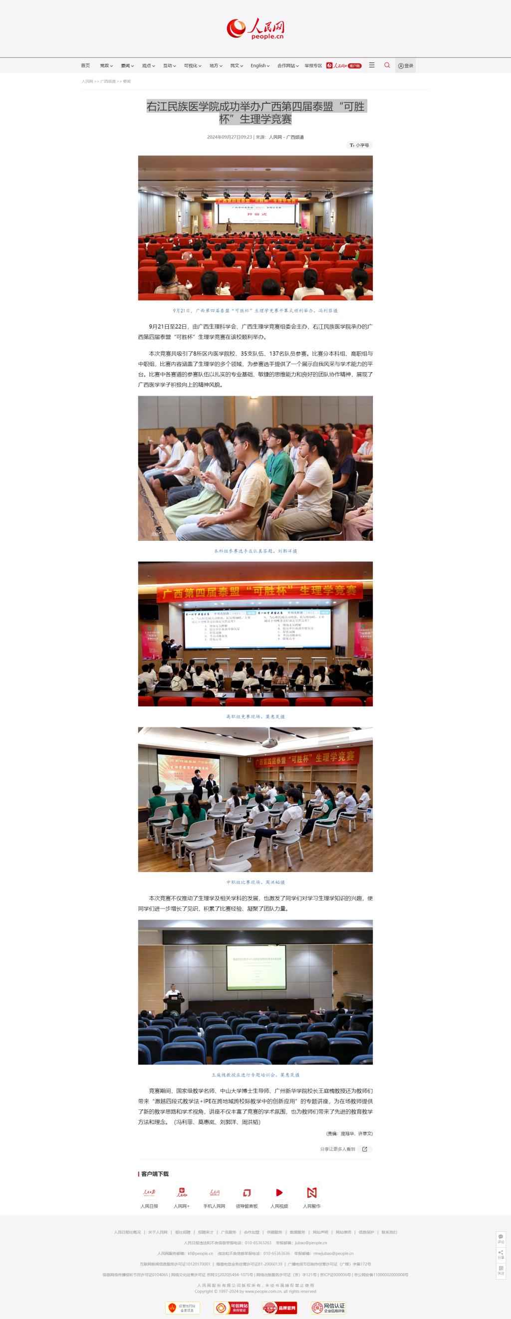 2024年9月27日,人民网以《必赢242net官网成功举办广西第四届泰盟“可胜杯”生理学竞赛》为题报道由必赢官网举办的广西第四届泰盟“可胜杯”生理学竞赛。