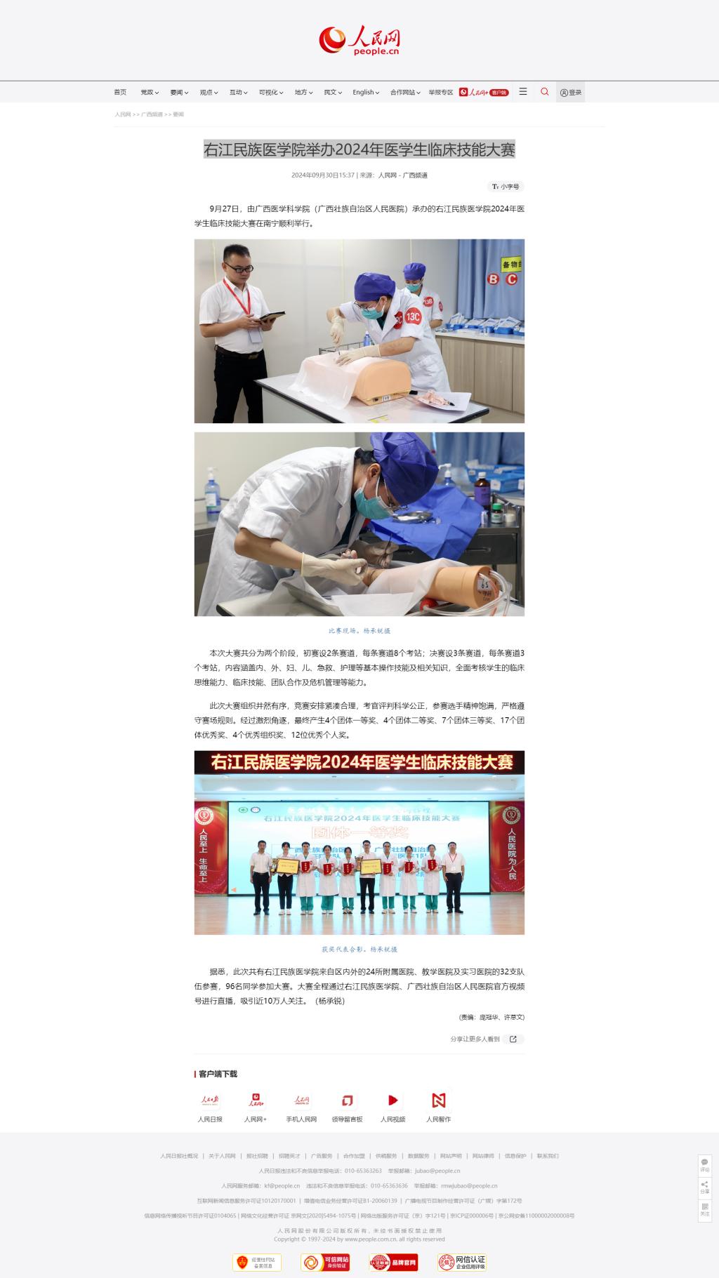 2024年9月30日,人民网以《必赢242net官网举办2024年医学生临床技能大赛》为题报道由必赢官网举办的2024年医学生临床技能大赛。