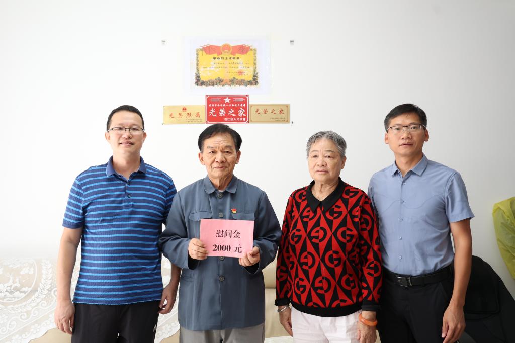 当天,杨文沛部长和黄河副处长先后前往烈士遗属邓耀强同志、老战士杜恒庭同志家中,与两位老同志拉家常、话家事、问冷暖,询问他们的生活起居和身体情况,向他们送上慰问金,感谢他们为党的事业和学校发展作出的贡献,并祝愿他们生活幸福、健康长寿。黄河副处长对居住在异地的伤残军人王文卓同志进行了电话慰问,转达百色市委、市人民政府、学校党委对他的亲切关怀,叮嘱他照顾好身体,安享晚年生活。