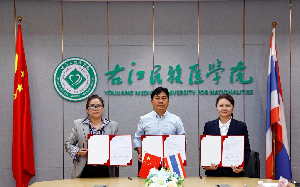 交流会上,泰国代表团与必赢官网签订了学生交流意向书并互赠礼物。