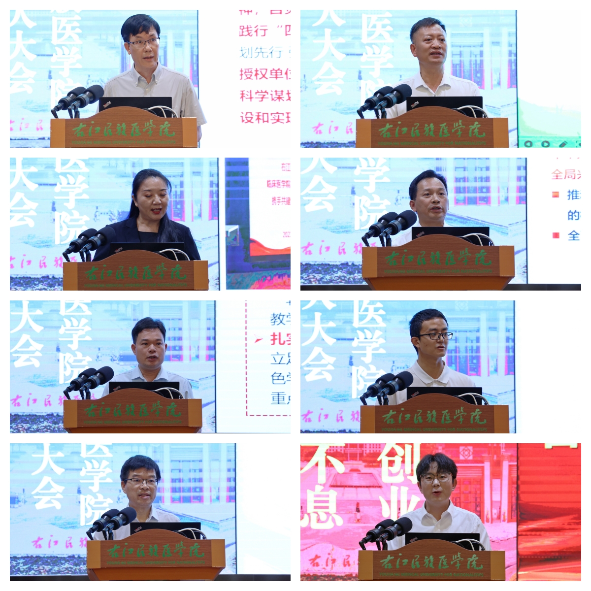会上,发展规划处、党委宣传部、教务处、临床医学院、护理学院、马克思主义学院中国近现代史纲要教研室、基础医学院解剖教研室、学生代表依次上台发言,就本科教育教学审核评估、更大申博等重点工作,对近年来落实立德树人根本任务,积极探索谋划“三全育人”路径和方法做了详细的汇报。