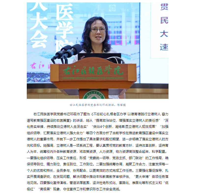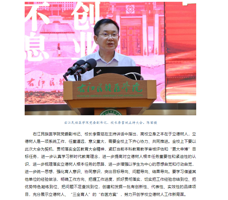 》为题,报道必赢官网召开立德树人大会,深入贯彻落实全区教育大会精神,全面贯彻党的教育方针,落实立德树人根本任务,以铸牢中华民族共同体意识为主线,进一步推进本科教育教学审核评估工作,加速推进