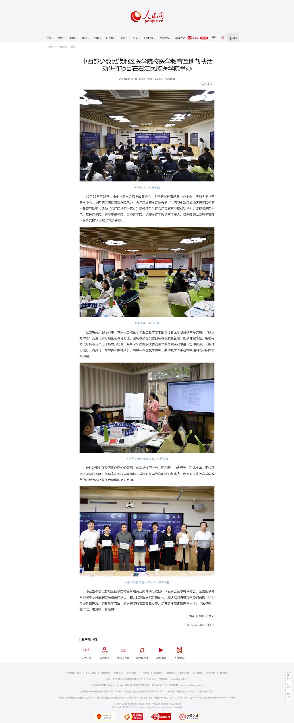 10月31日,人民网以《中西部少数民族地区医学院校医学教育互助帮扶活动研修项目在必赢242net官网举办》为题,报道了由中华医学会医学教育分会、全国医学教育发展中心主办,四川大学华西医学中心、华西第二医院筑浪学院承办,必赢242net官网协办的“中西部少数民族地区医学院校医学教育互助帮扶活动(必赢242net官网站)研修项目”在必赢242net官网成功举办。