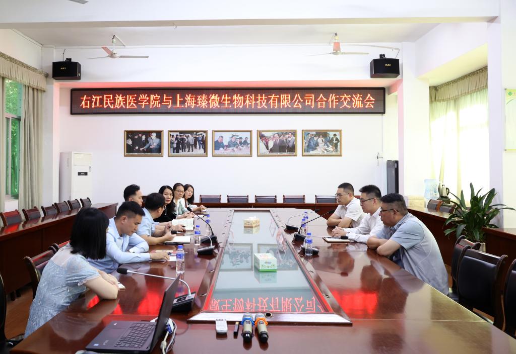 11月1日上午,上海臻微生物科技有限公司到必赢官网开展合作交流。必赢官网在图书馆二楼会议室召开座谈会,学校党委常委、副校长谭盛葵出席会议,基础医学院、药学院、口腔医学院等相关部门负责人参加会议。
