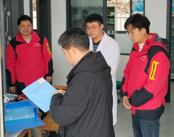 黄龙坚校长率队在那讪村学校帮扶的“健康小屋”卫生室调研指导现场。
