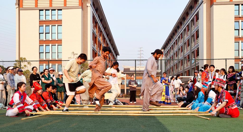 启动仪式现场热闹非凡,竹竿舞、抛绣球、射箭、抽陀螺、三人板鞋、高脚竞速等各种富有民族特色的活动,吸引了各族师生们积极参与其中;五色糯米饭、艾叶馍馍等美食香气四溢,让师生们在参与活动的同时,能品尝到不同民族的美食。
