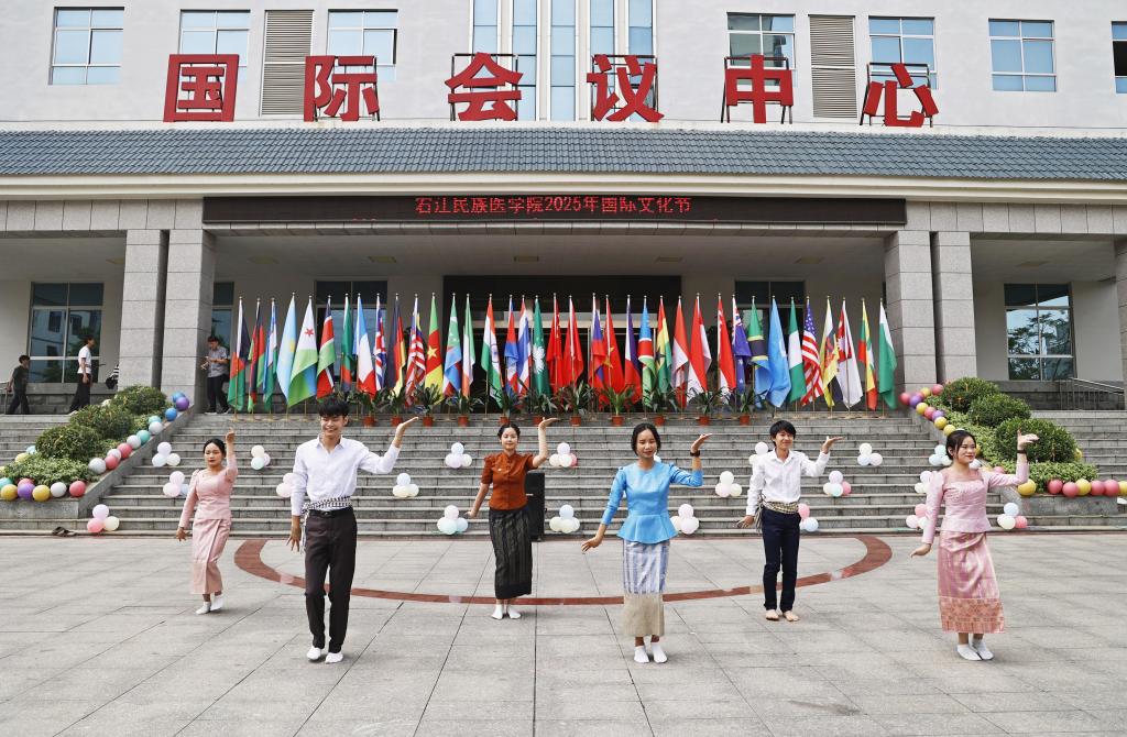 四月的右医校园,阳光明媚、生机盎然。4月13日下午,学校2025年国际文化节在国际会议中心前举办,国际合作与交流中心全体教师、语言文化学院学生和来自越南、柬埔寨、老挝、泰国等国家的近200名国际学生齐聚一堂,感受世界多元文化的交流与融合。