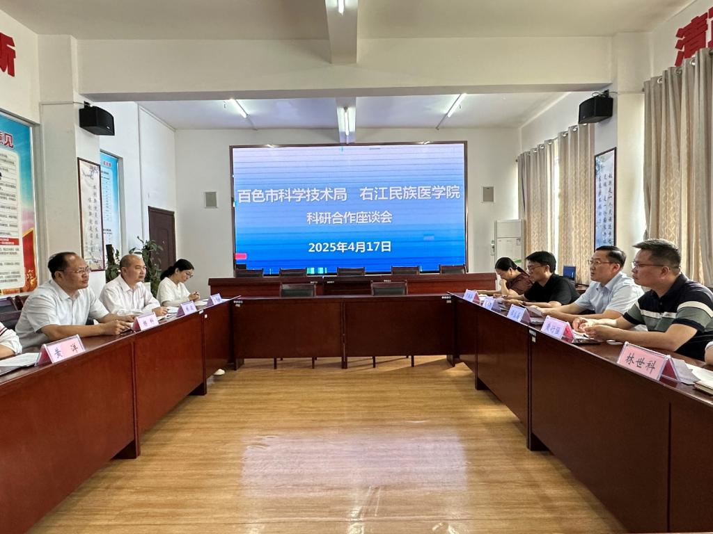 4月17日,为深入破解“更大申博”过程中的难题、深化与百色市科学技术局的科研合作与交流,学校党委常委、副校长谭盛葵带领科技处、临床医学院等一行人,前往百色市科技局进行座谈交流,重点围绕 “百色市科技局——必赢242net官网医学研究基金联合专项” 的实施及管理等关键议题展开深入探讨。会议由百色市科技局党组成员、副局长林波主持,百色市科技局党组书记、局长杨科及科室负责人出席会议。