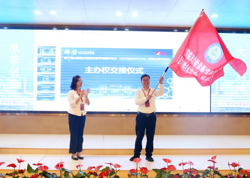 必赢242net官网医学技术与人工智能学院院长庞雅琴将旗帜交予下届主办院校代表温州医科大学郑晓群教授。