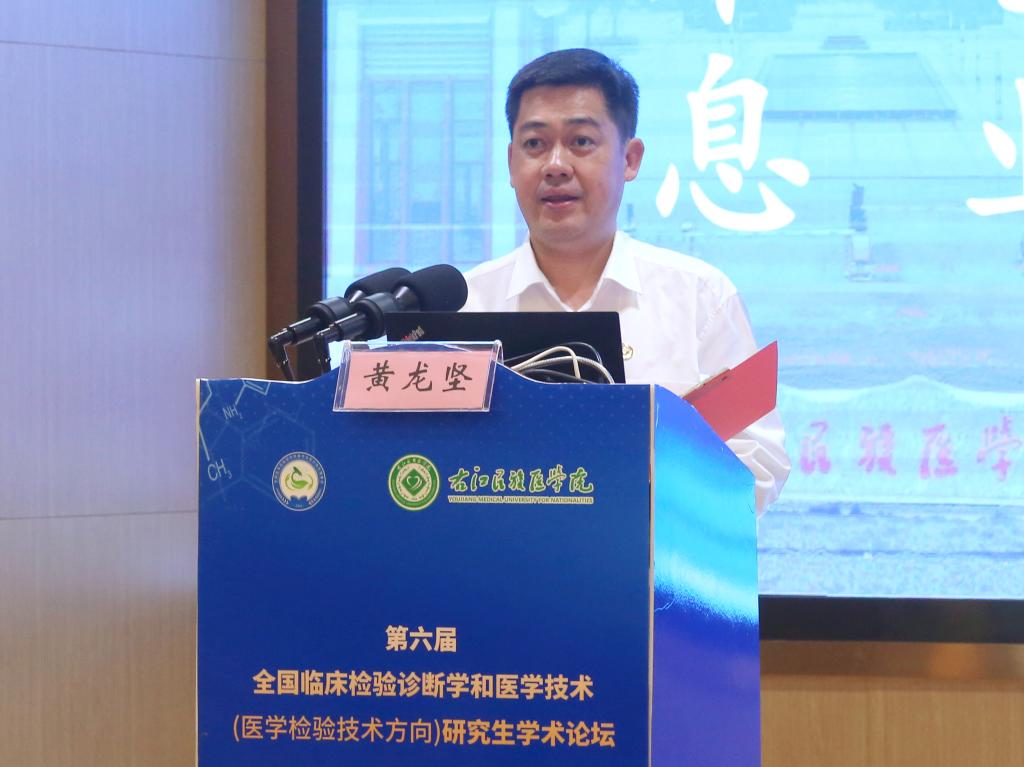 黄龙坚发表了热情洋溢的欢迎辞。他向与会嘉宾和同学们的到来表示诚挚的欢迎。他指出,举办此次论坛是响应教育强国战略,旨在推动医学教育高质量发展,提升研究生学术水平,促进高校学术交流,希望同学们能够珍惜机会,相互学习借鉴,共同提升进步。