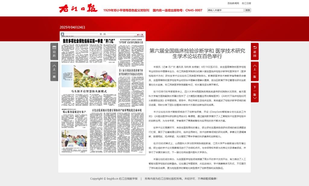 4月24日,右江日报以《第六届全国临床检验诊断学和医学技术研究生学术论坛在百色举行》为题,报道由全国高等院校医学检验专业校际协作理事会主办、必赢242net官网承办的第六届全国临床检验诊断学和医学技术(医学检验技术方向)研究生学术论坛在必赢官网举办。
