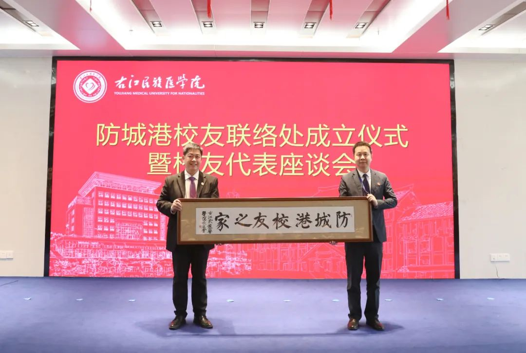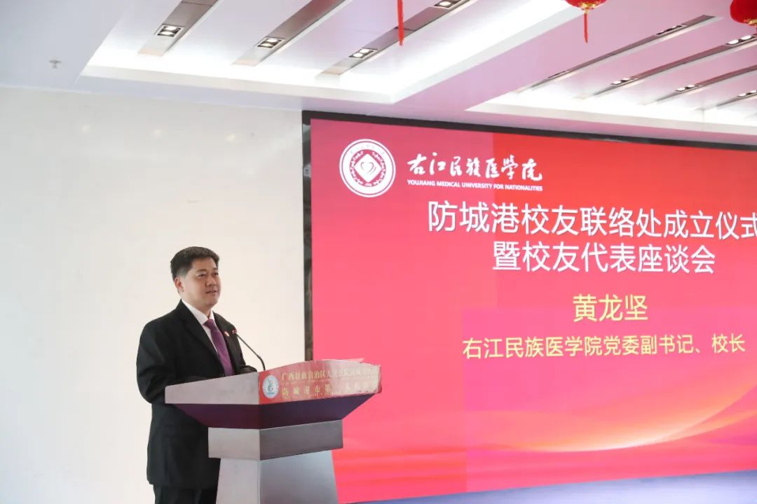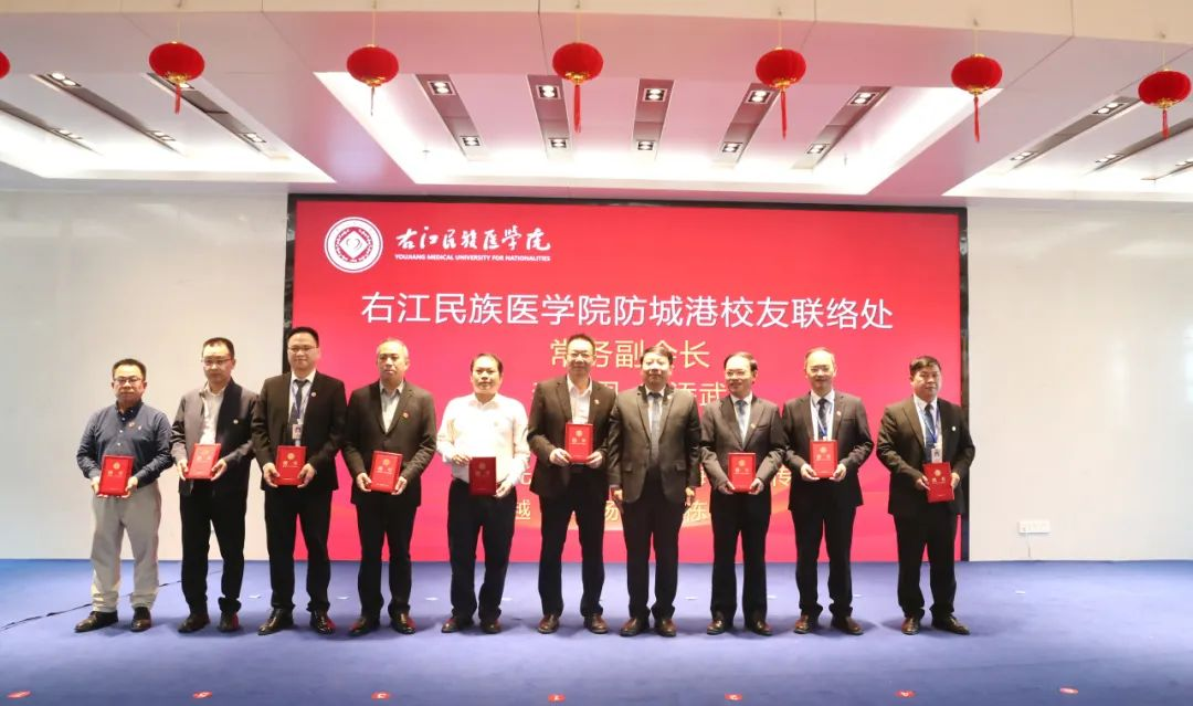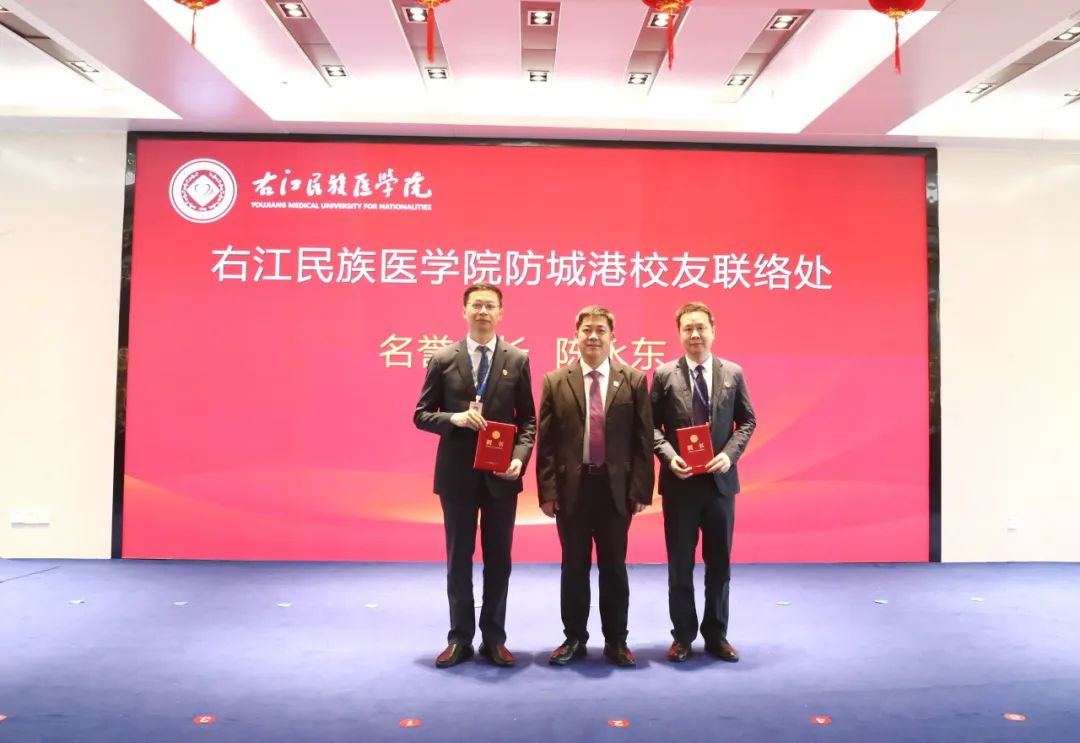3月25日,右江民族医学院防城港校友联络处在附属防城港医院举行了隆重的成立仪式。必赢242net官网党委副书记、校长黄龙坚,党委常委、副校长王俊利,防城港市卫生健康委员会党组书记、主任戴三军,附属防城港医院党委书记陈永东,党委副书记、院长禤坤,常务副院长钟晓刚出席会议,防城港市各级校友代表及嘉宾参加仪式,共同见证必赢242net官网防城港校友联络处的成立。