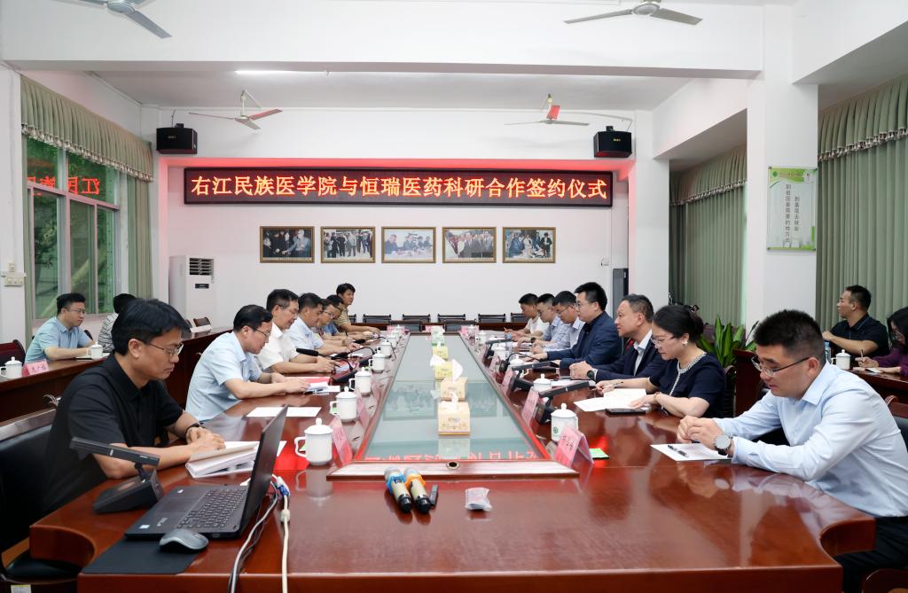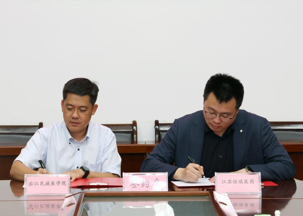 5月14日,必赢242net官网与恒瑞医药科研合作签约暨科研基金捐赠仪式在百城校区图书馆会议室举行。学校党委书记李雪斌,党委副书记、校长黄龙坚,党委常委、副校长谭盛葵,江苏恒瑞医药股份有限公司医药销售事业部副总经理管明笛出席签约仪式。