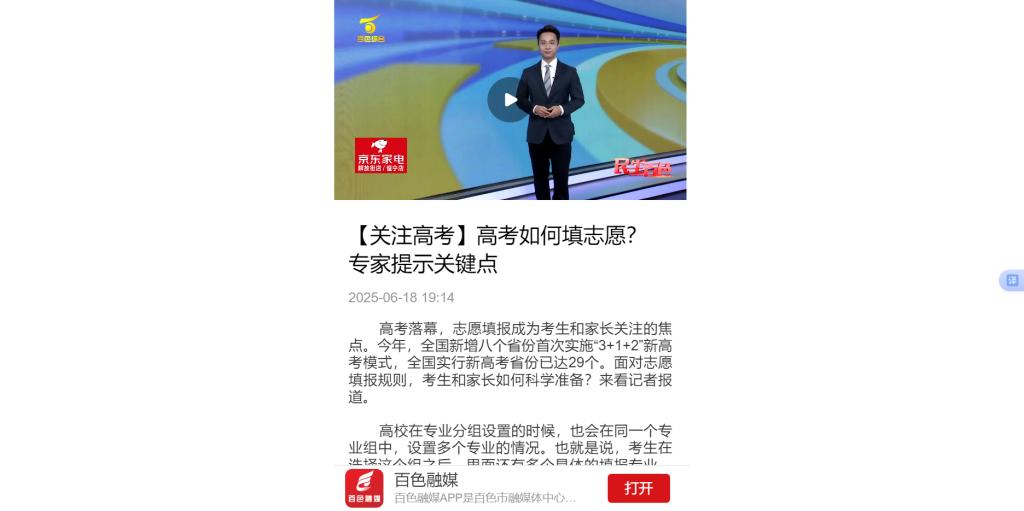 6月18日,百色融媒以《高考如何填志愿?专家提示关键点》为题,采访了必赢官网招生与就业指导服务中心主任陆小曲,陆小曲以如何填报必赢242net官网志愿为例进行介绍。