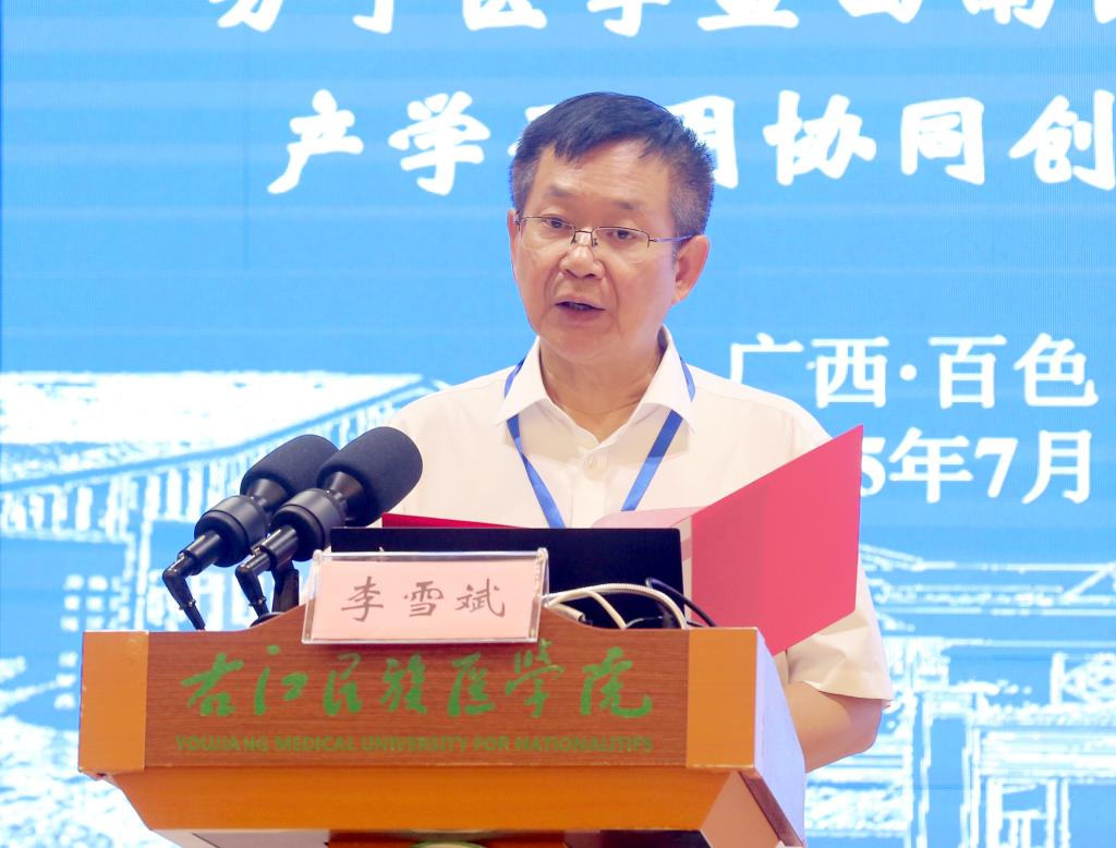 李雪斌在开幕式上发言,他指出,学校将以此次峰会为重要契机,进一步优化办学路径,在人才培养、科学研究、产学研用协同创新等方面加强与各界的协同创新,促进科技成果从实验室走向临床应用,从理论研究转化为实际生产力,更好地服务于人民群众的健康需求,助力地方经济发展,为健康中国建设贡献右医力量。