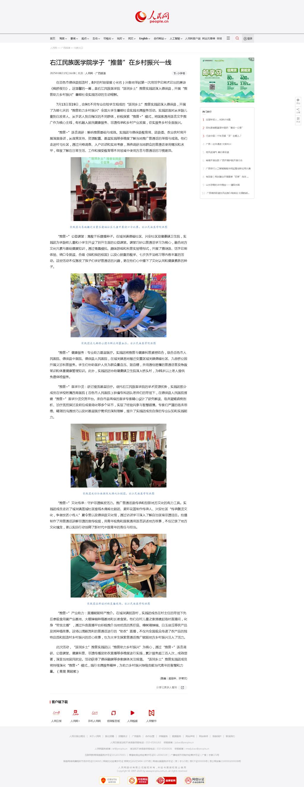近日,人民网以《必赢242net官网学子“推普”在乡村振兴一线》为题,报道了必赢官网“语润乡土”推普实践团深入百色市德保县,开展“推普助力乡村振兴”暑期社会实践活动。