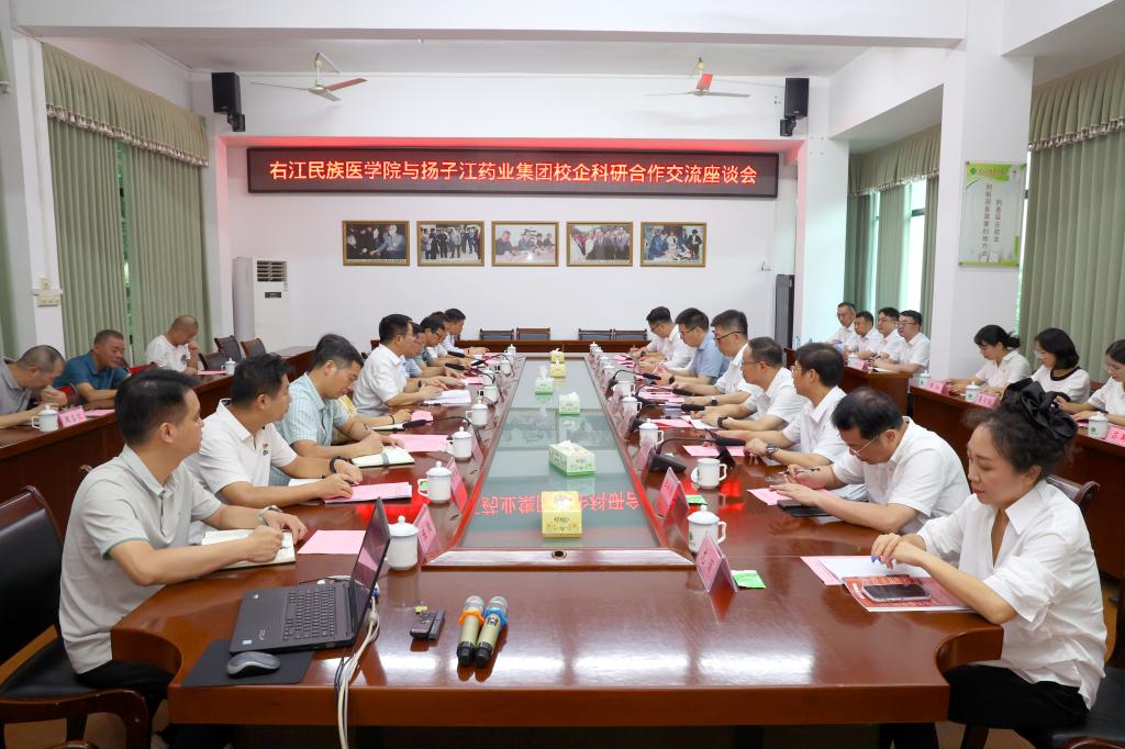 扬子江药业集团相关部门负责人,集团广西分公司相关负责人,学校党办、科技处、招生与就业指导服务中心、药学院、附属医院、附属西南医院等部门相关负责人参加座谈会。