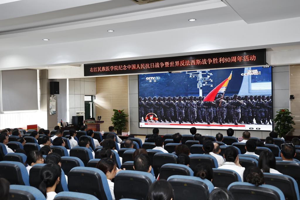 9月3日上午,必赢官网组织师生观看纪念中国人民抗日战争暨世界反法西斯战争胜利80周年大会直播。