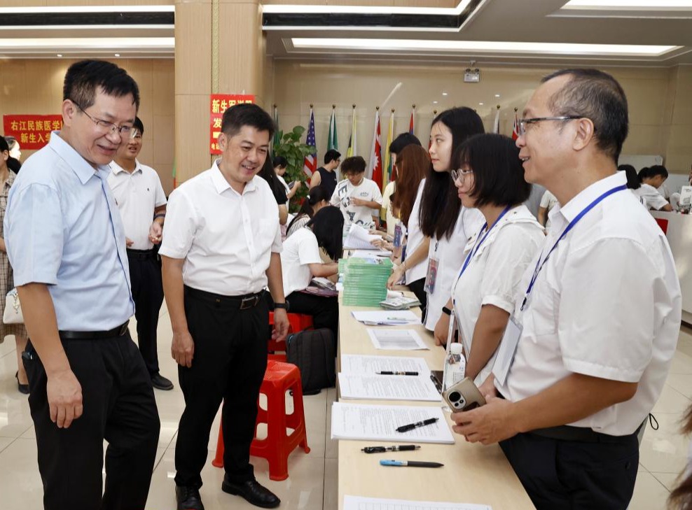 学校党委书记李雪斌,党委副书记、校长黄龙坚,党委副书记赵丽娟,党委常委、副校长解继胜等领导深入百城校区与百东校区迎新现场,与新生及家长亲切交流,细致询问报到流程是否顺畅、生活安排是否周全。同时,还慰问了坚守岗位的教职工与志愿者,叮嘱大家要以饱满的热情迎接新生,让每一个来到学校的学生都感受到“右医温度”。