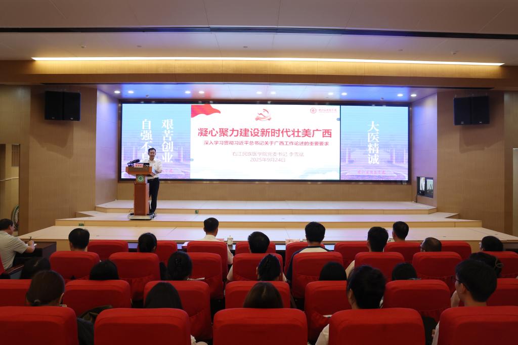 9月24日,学校党委书记李雪斌向校内青年师生群体作题为《凝心聚力建设新时代壮美广西——深入学习贯彻习近平总书记关于广西工作论述的重要要求》的专题宣讲报告。