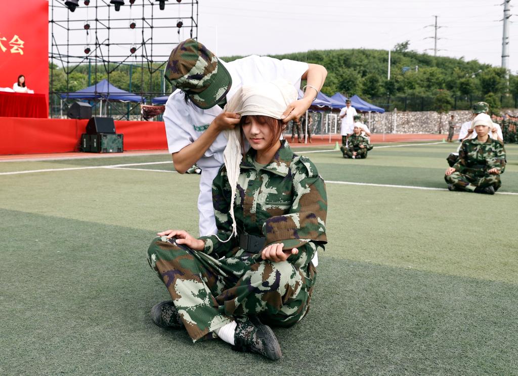 当天上午9时,典礼在庄严的国歌声中拉开帷幕,军训成果汇报展演正式开始。各连队方阵迈着铿锵有力的步伐依次走过主席台,接受检阅。在分列式的汇演中,各方队迈着铿锵有力的步伐通过主席台,步伐整齐划一,摆臂高度精准一致,每一步都踏得坚实有力;方阵口号响彻云霄,呐喊声饱含激情,尽显新生的蓬勃朝气与军人的钢铁意志。军体拳方阵动作一招一式彰显军人气魄;刺杀操方阵气势如虹,喊杀声震耳欲聋,弓步刺、马步刺等动作精准利落。新生们以饱满的热情、昂扬的斗志完成了各项展演科目,充分展现了14天军训的丰硕成果,自信展现着军事训练带来的蜕变与成长,赢得了现场师生的阵阵掌声。