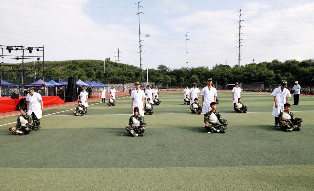 医学技术与人工智能学院2025级卫检班黄浩家代表受训新生发言,他表示,军训教给我们的,不只是站军姿、走正步,更是一种昂扬的生活态度,一种坚韧的奋斗精神,未来会将这份铁的纪律、钢的意志和团结的精神,融入未来的学习与生活,将秉承着“大医精诚”的校训,积极践行医学生的使命与担当。