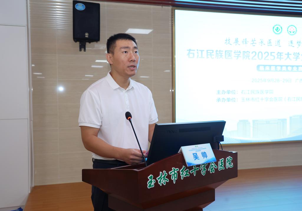 吴帅在致辞时指出,附属玉林医院要以此为契机,加强学校和医院之间的交流与合作,共同探索医学教育的新模式、新方法,为玉林市卫生健康事业高质量发展培养更多医德高尚、医术精湛的高质量应用型医学人才。