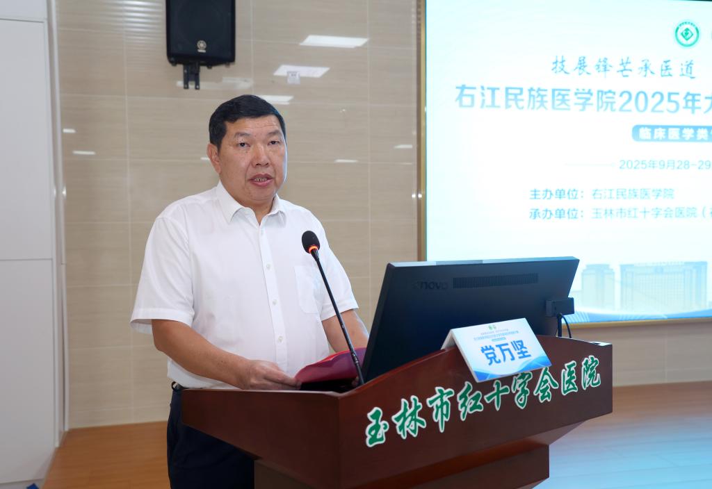 党万坚在致辞时希望附属玉林医院要牢牢把握好这次机遇,主动对接医教协同,充分发挥人才、智力、科技、资源优势,聚焦内涵发展,优化学科结构,大力推进医院实现更高水平、更可持续的发展,为玉林市经济社会发展作出新的更大贡献。