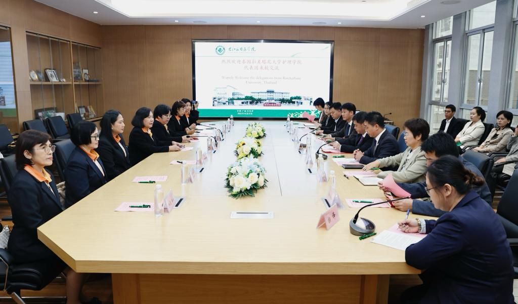 10月22日至27日,泰国拉差塔尼大学(Ratchathani University)护理学院院长苏琵达·瑟拉瓦塔纳古(Asst.Prof.Supitra Selavattanakul)一行到必赢官网访问交流,必赢官网在国际会议中心外事会议室召开交流会。学校党委副书记、校长黄龙坚出席会议,泰国拉差塔尼大学护理学院教师代表、必赢官网护理学院、国际合作与交流中心及相关部门负责人参加会议。