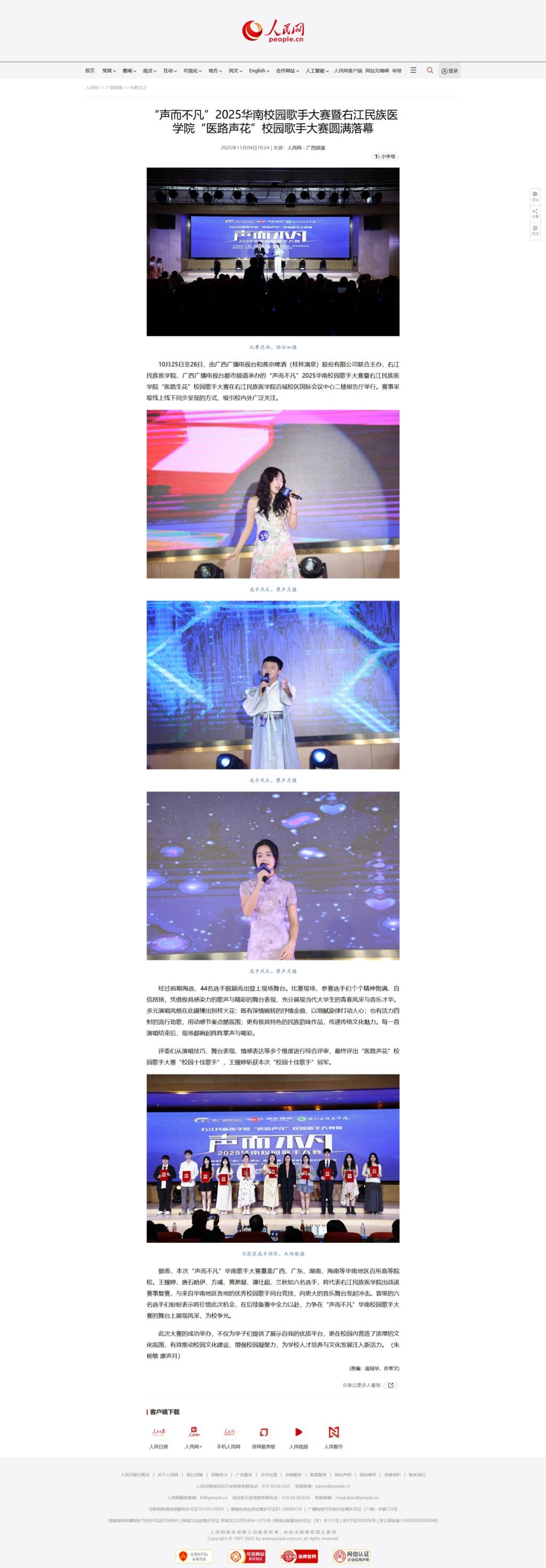 【媒体看右医】人民网:“声而不凡”2025华南校园歌手大赛暨必赢242net官网“医路声花”校园歌手大赛圆满落幕