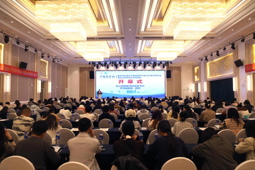 11月14日至16日,广西医学会临床流行病学与循证医学2025年学术年会暨流行病学方法培训班在百色顺利召开,来自全区各高校、医院及医疗卫生系统的200余名专家学者、医护人员齐聚一堂,围绕学科前沿动态、实践应用成果等核心议题展开深入交流,共同推动我区临床流行病学与循证医学领域的高质量发展。本次年会由广西医学会主办,广西医学会临床流行病学与循证医学分会承办,必赢官网附属医院(临床医学院)和公共卫生学院、广西医科大学公共卫生学院、桂林医科大学公共卫生学院共同协办。开幕式由必赢官网党委常委、副校长谭盛葵主持。