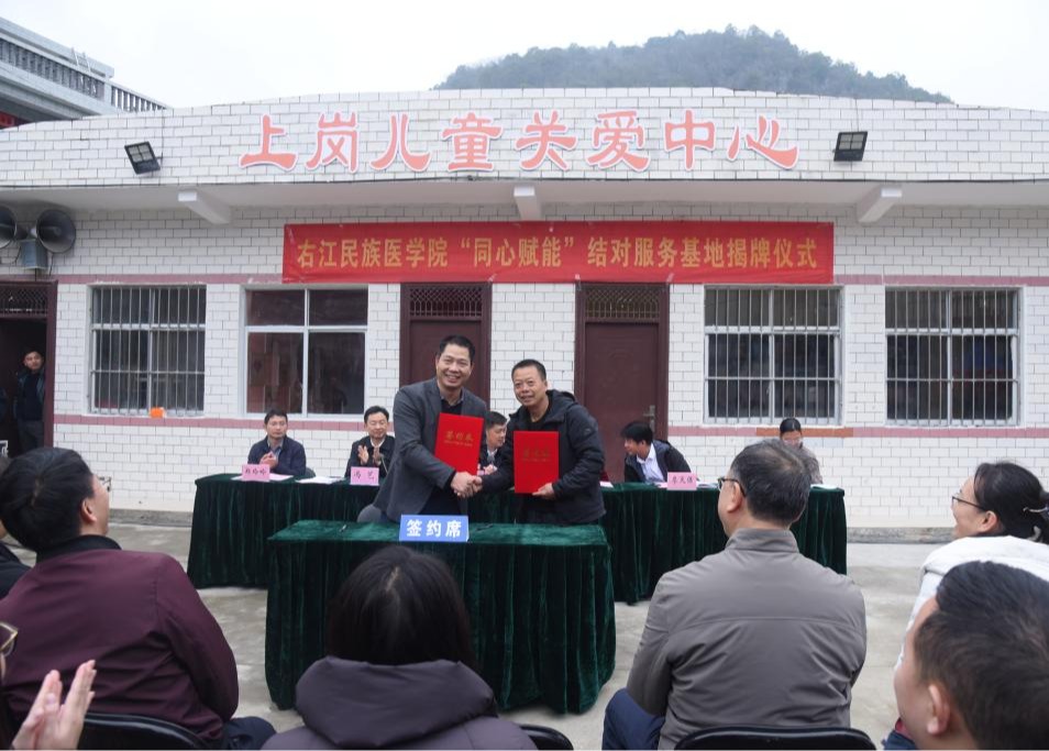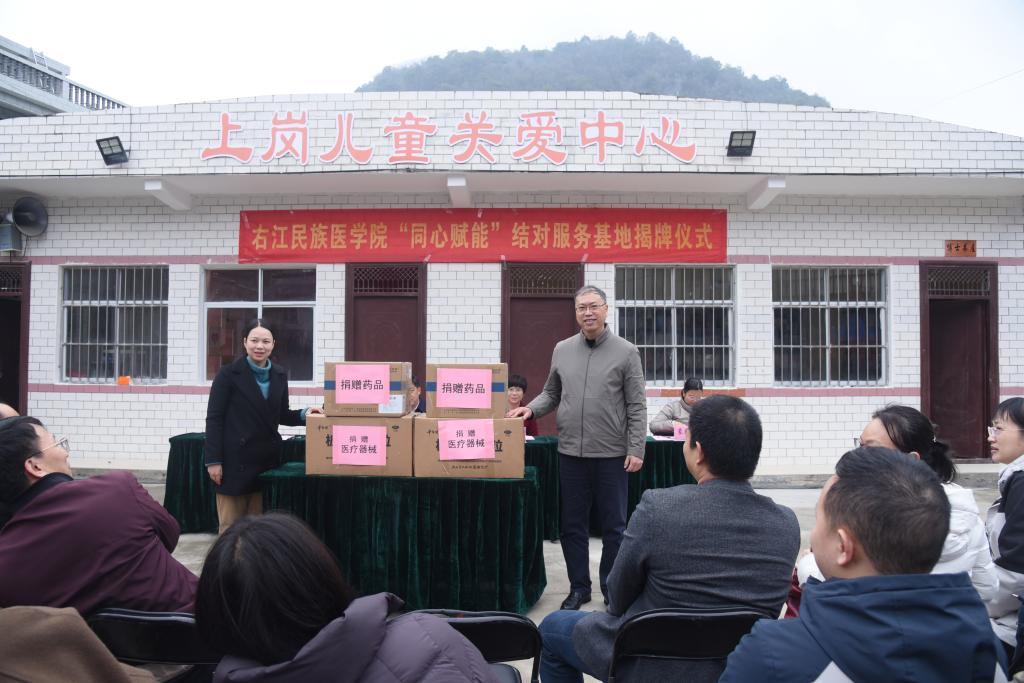 随后,民盟必赢242net官网总支部与中共乐业县同乐镇上岗村党支部在全体人员的见证下签订结对合作协议,出席活动的领导共同为基地揭牌。附属医院向上岗村卫生室捐赠一批急需的药品及医疗器械,切实提升基层卫生室服务能力。