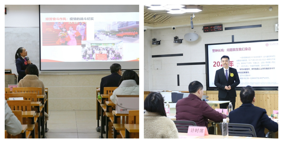 在微党课比赛环节,选手们立足岗位,或溯古论今畅谈廉政建设的时代内涵,或引经据典重温党史征程的峥嵘岁月,以生动的语言、真挚饱满的情感传播党的创新理论,展现党务工作者分析解读政策、对党员师生的教育引导以及解决理论困惑和实际问题的能力。在党建工作案例展示环节,选手们围绕强化基层党组织政治功能、提升党组织组织力、严格党员教育管理、提高思想政治工作能力、创新“党建+”工作模式、党建业务深度融合、党建服务经济社会发展等方面,讲述了基层党建工作的特色亮点和创新成效,展示了具有右医特色的党建品牌和工作案例。