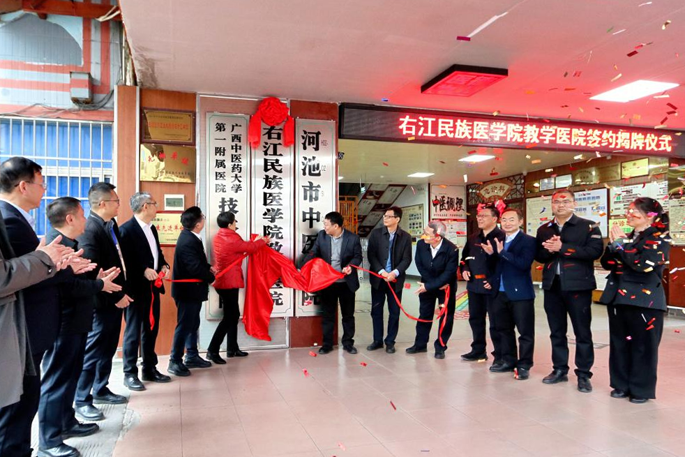 必赢官网与河池市中医医院缔结教学医院揭牌仪式。