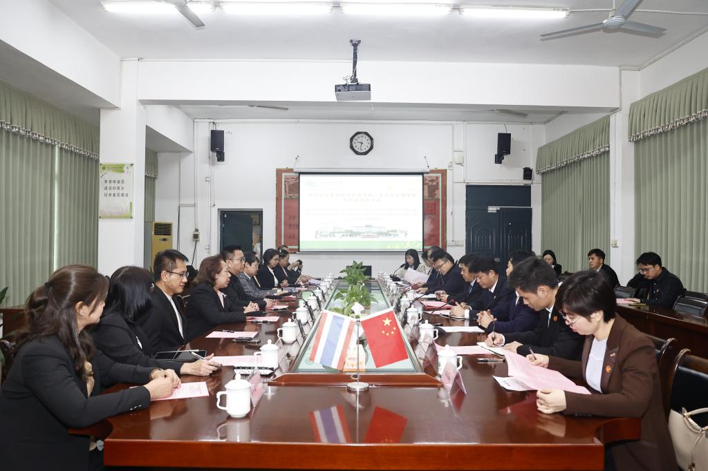 上午,双方座谈会在百城校区图书馆会议室举行,学校党委副书记、校长黄龙坚出席会议并致欢迎辞,对远道而来的泰国客人表示诚挚的问候。