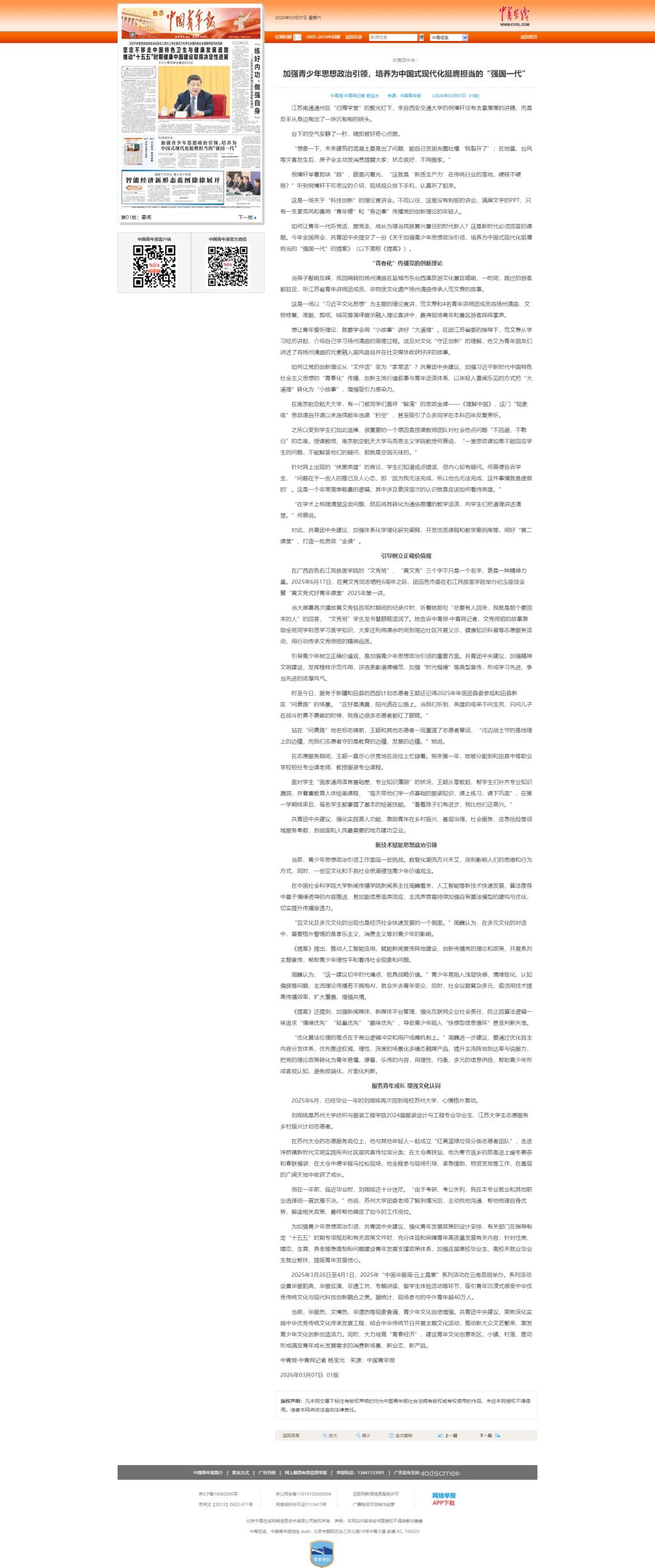 报道链接:https://zqb.cyol.com/pc/content/202603/07/content_423019.html
