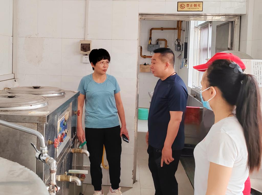 检查组在学生食堂进行检查。