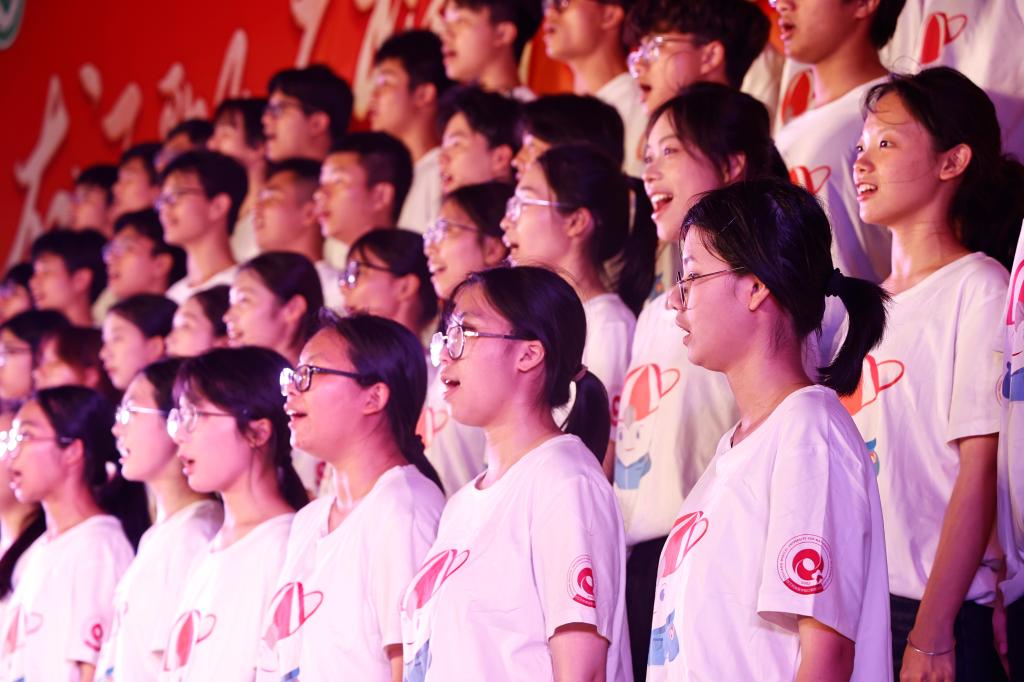 舞台灯光温柔洒落,同学们精神昂扬。旋律响起,整齐嘹亮的歌声回荡在田径场上空,各声部层次分明、配合默契。齐唱时大气饱满,独唱时细腻动人,每个班级都各具特色。台下观众认真聆听,每曲终了,掌声与喝彩声接连不断,现场氛围热烈融洽,歌声与暖意铺满整个操场。比赛间隙,校大学生艺术团和同心合唱团献上歌曲《立春》,为整场比赛画上圆满句号。