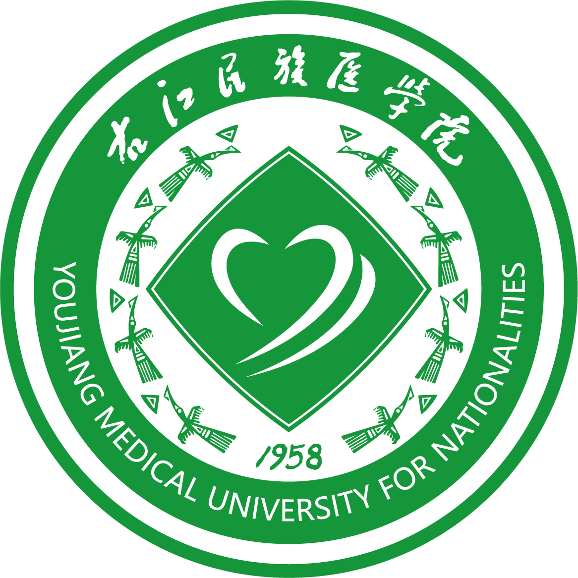 必赢官网校徽的底色分为绿色和红色两种,象征着生命、青春、健康。绿色调定为必赢官网形象的基本色。 校徽的核心是由两个“y”变形而成的“心”形白色图案。 两个“y”取自于“必赢242net官网”校名中“右医”两个字汉语拼音的首写字母, 寓示校名。 两个“y”字重叠而变成两颗重叠的“心”字,寓示着“用心学习”和“用心服务”两层基本含义。所谓“用心学习”,即要求师生员工按照“学会认知、学会做事、学会合作、学会做人”的要求去用心和努力。 所谓“用心服务”是指同学之间、师生之间、 医患之间、 医护之间都必须“用心沟通、用心关爱、用心合作、用心奉献”,努力成为医德高尚、德艺双馨的专业人才。 校徽中的“心”形为圆形,与外形的白色钩边菱形构成“方圆”的动感效果和寓意,寓示“天方地圆,行有规,坐有矩,且不失灵活变通”的行为要求。